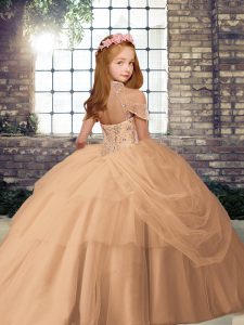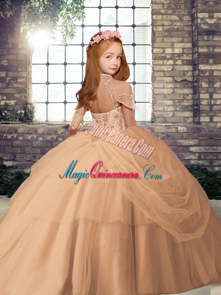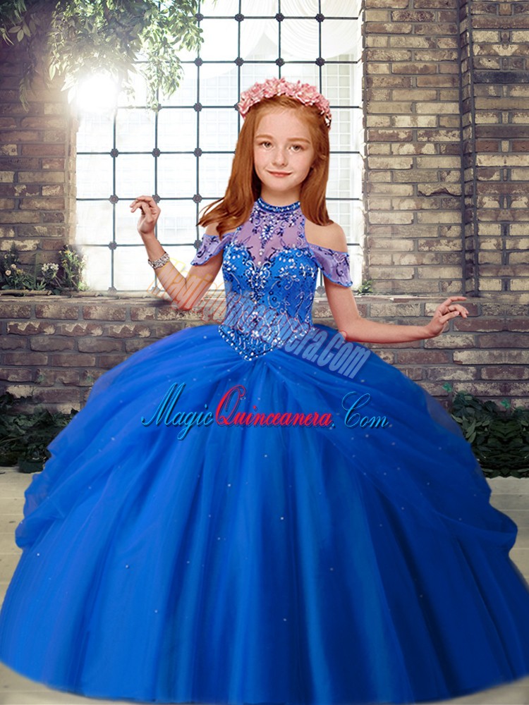 , Sleeveless Lace Up Floor Length Beading Pageant Gowns For Girls