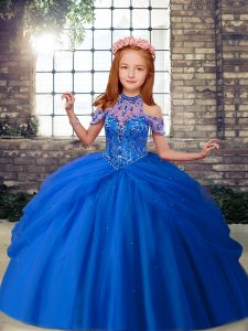 Sleeveless Lace Up Floor Length Beading Pageant Gowns For Girls