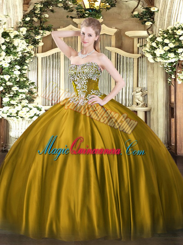 , Sleeveless Lace Up Floor Length Beading Quinceanera Gown