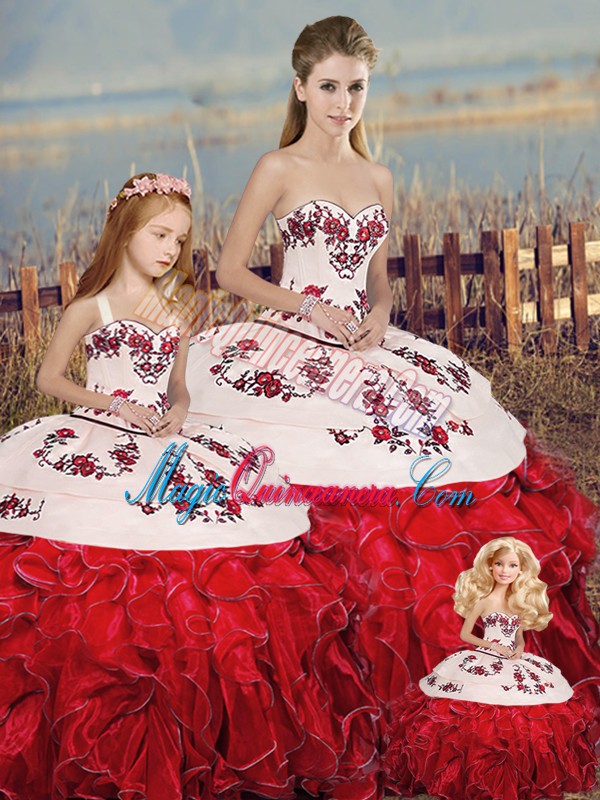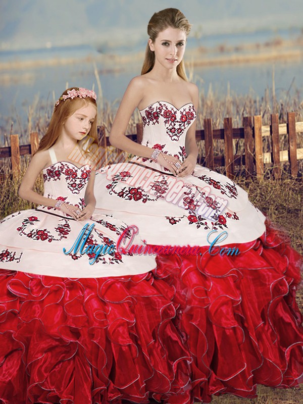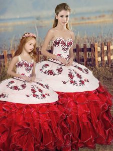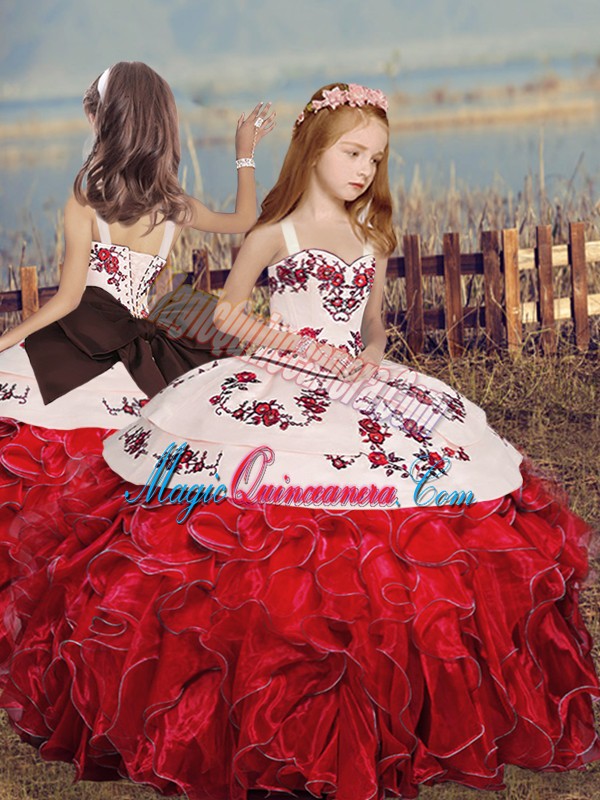 Sleeveless Lace Up Floor Length Embroidery and Ruffles and Bowknot Sweet 16 Quinceanera Dress