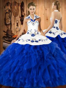 Sleeveless Lace Up Floor Length Embroidery and Ruffles Ball Gown Prom Dress