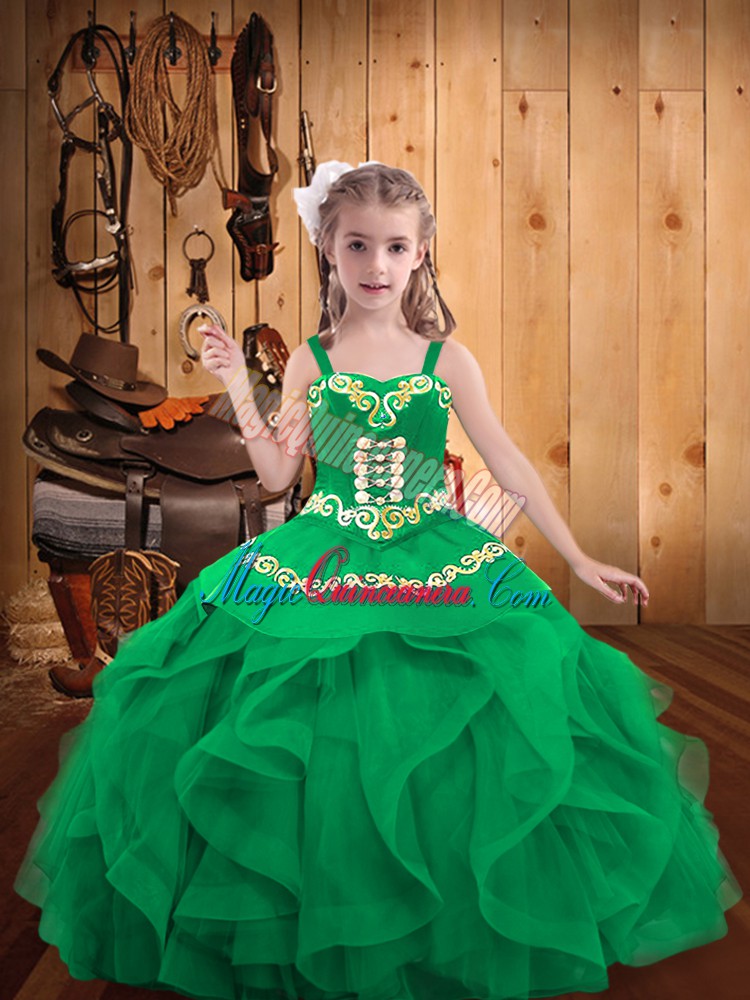 , Sleeveless Lace Up Floor Length Embroidery and Ruffles Pageant Dress for Teens