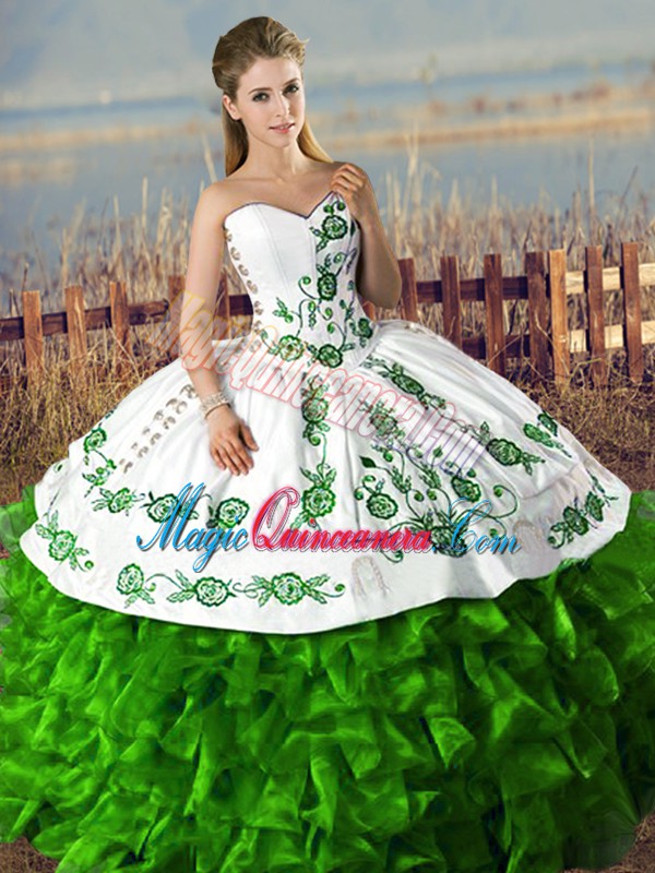 Sleeveless Lace Up Floor Length Embroidery and Ruffles Sweet 16 Quinceanera Dress