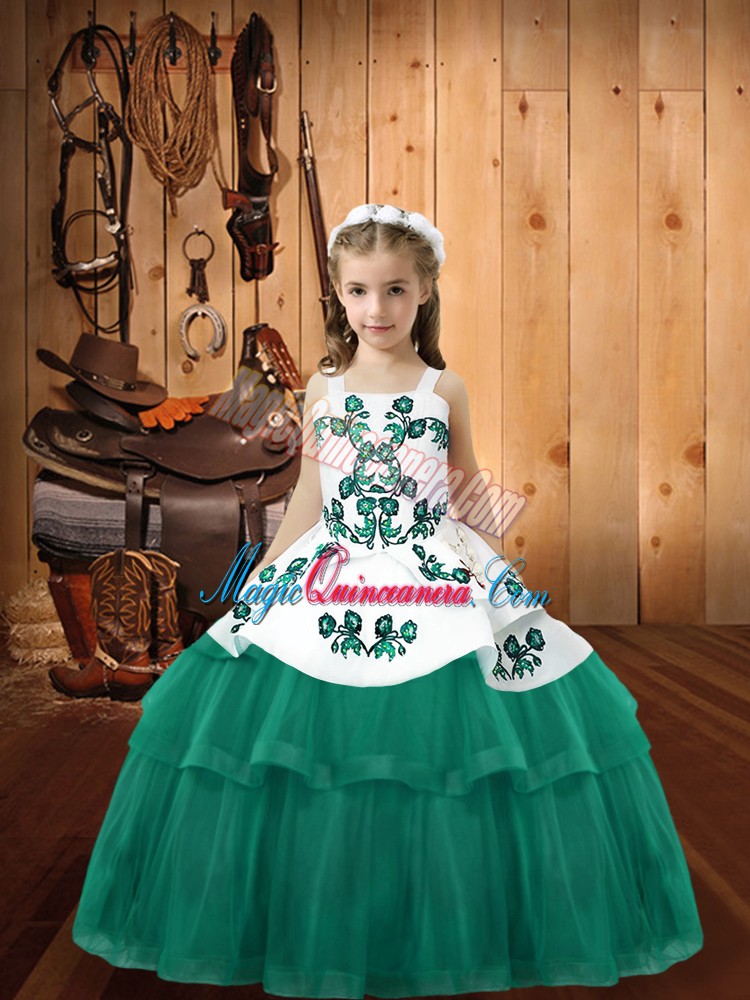 Sleeveless Lace Up Floor Length Embroidery Girls Pageant Dresses