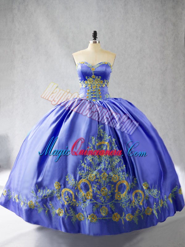 Sleeveless Lace Up Floor Length Embroidery Quinceanera Gown