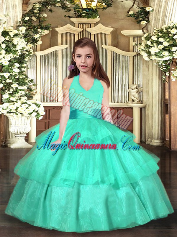 Sleeveless Lace Up Floor Length Ruffled Layers Pageant Dress for Teens