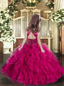 , Sleeveless Lace Up Floor Length Ruffles Little Girls Pageant Dress