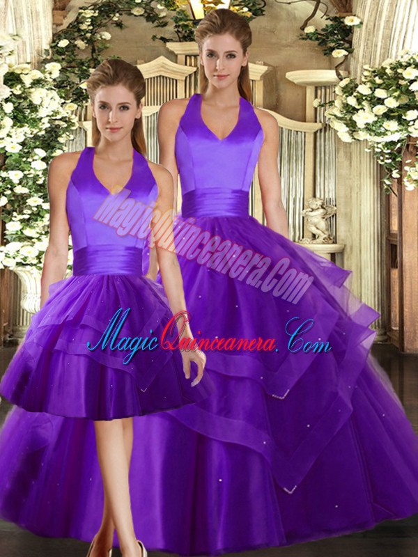 Sleeveless Lace Up Floor Length Ruffles Sweet 16 Dresses