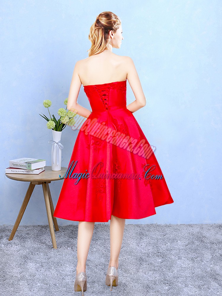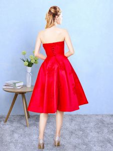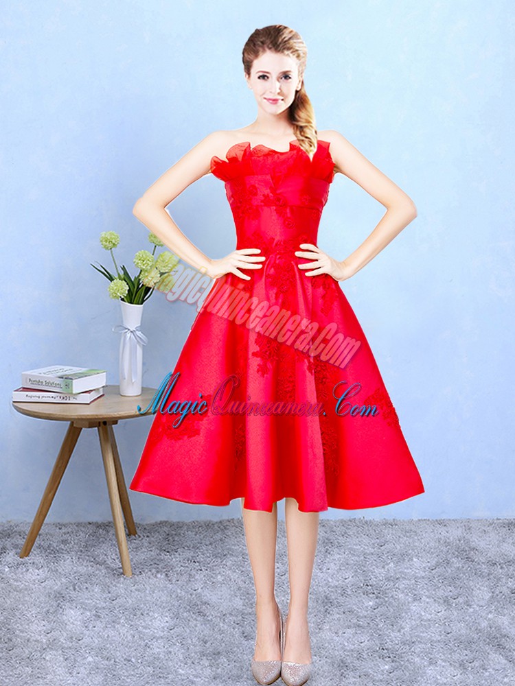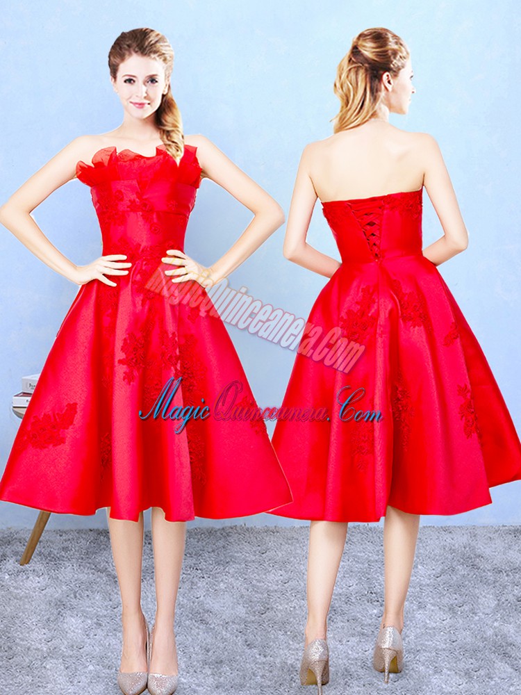Sleeveless Lace Up Knee Length Appliques and Ruffles Quinceanera Court Dresses