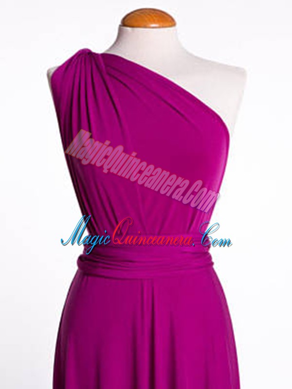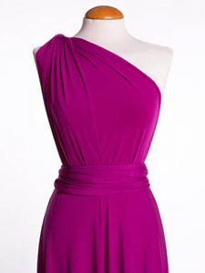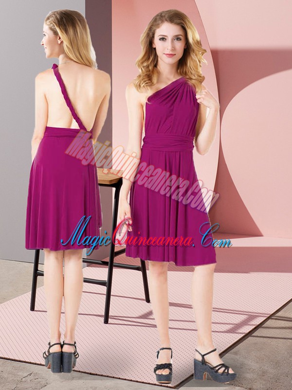 Sleeveless Mini Length Ruching Criss Cross Quinceanera Dama Dress with Fuchsia
