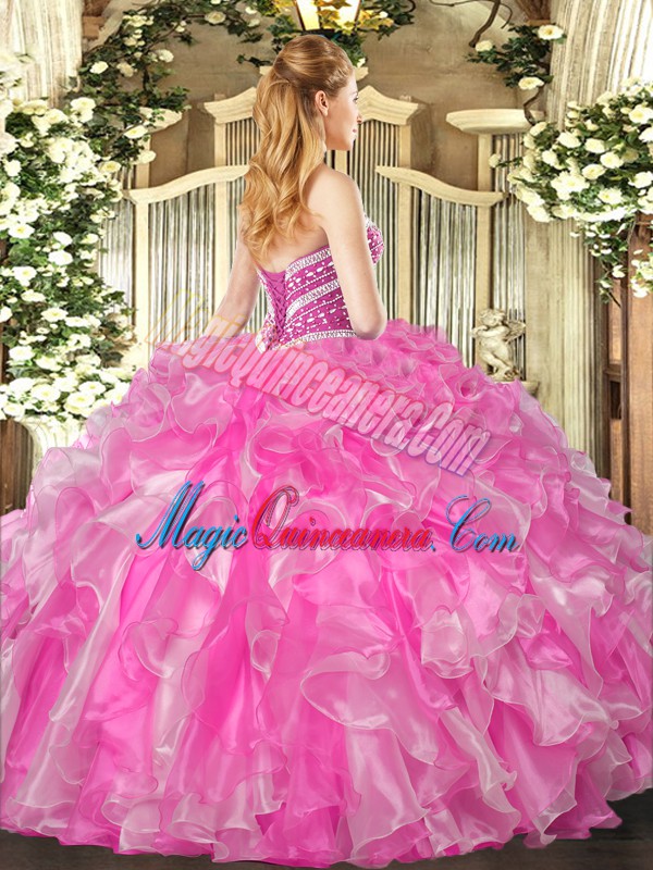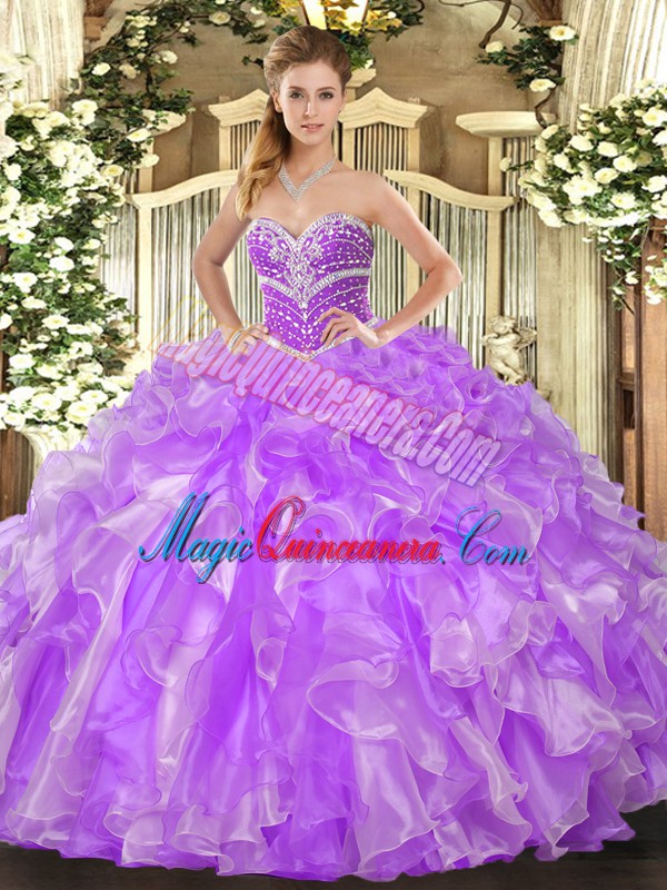 Sleeveless Organza Floor Length Lace Up 15 Quinceanera Dress in Lavender with Beading and Ruffles
