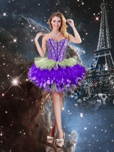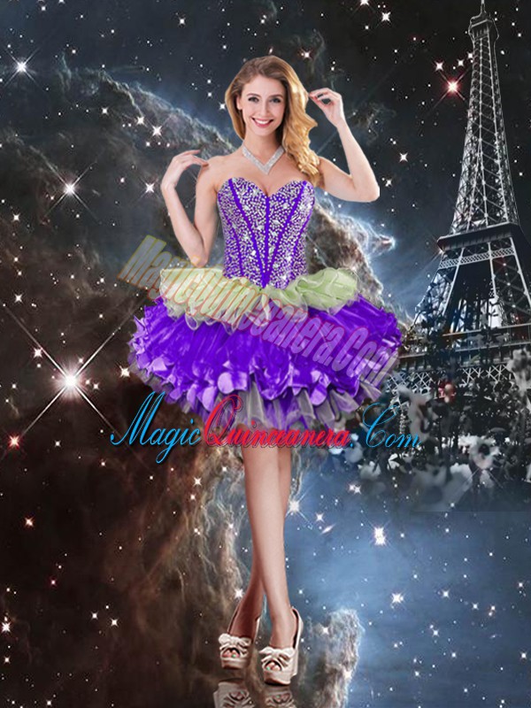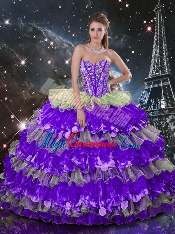 Sleeveless Organza Floor Length Lace Up 15th Birthday Dress in Multi-color with Beading and Ruffles and Ruffled Layers