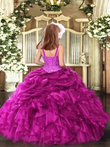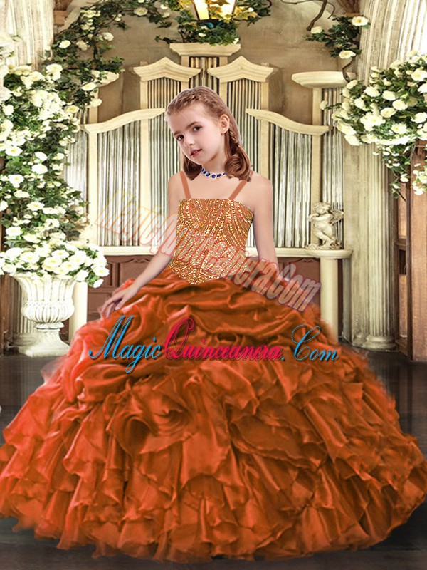 Sleeveless Organza Floor Length Zipper Pageant Dress Womens in Orange with Beading and Ruffles