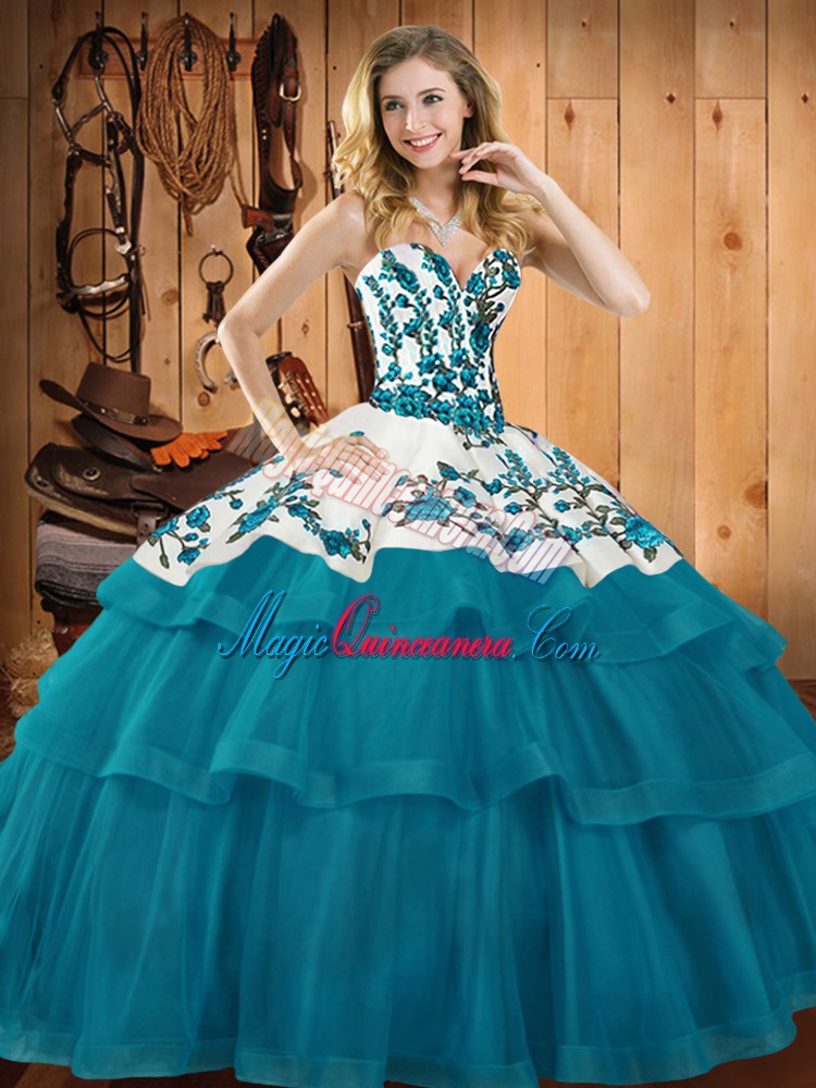 Sleeveless Sweep Train Embroidery Lace Up Quinceanera Gowns