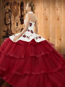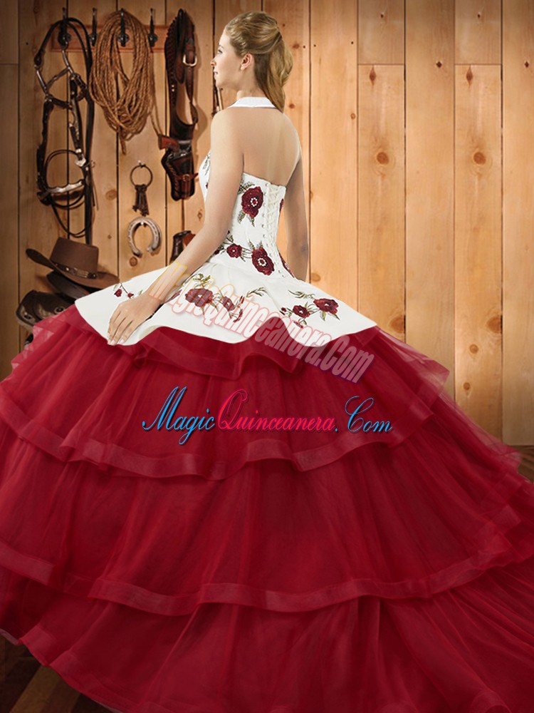 , Sleeveless Sweep Train Lace Up Embroidery and Ruffled Layers Vestidos de Quinceanera