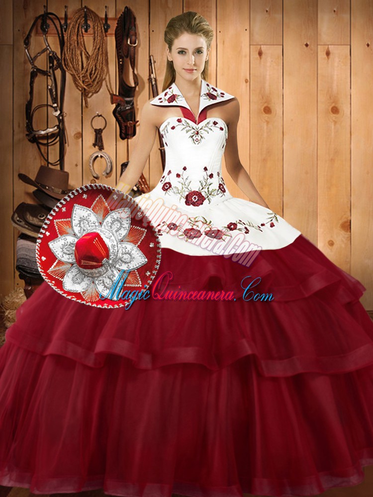 Sleeveless Sweep Train Lace Up With Train Embroidery and Ruffled Layers Sweet 16 Quinceanera Dress