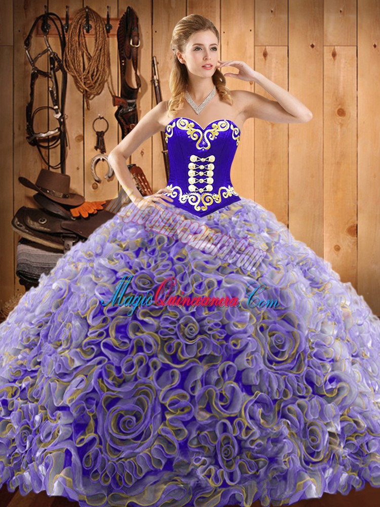 Sleeveless Sweep Train Lace Up With Train Embroidery Sweet 16 Quinceanera Dress