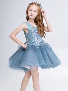 Sleeveless Tulle Mini Length Lace Up Little Girl Pageant Gowns in Grey with Lace and Appliques