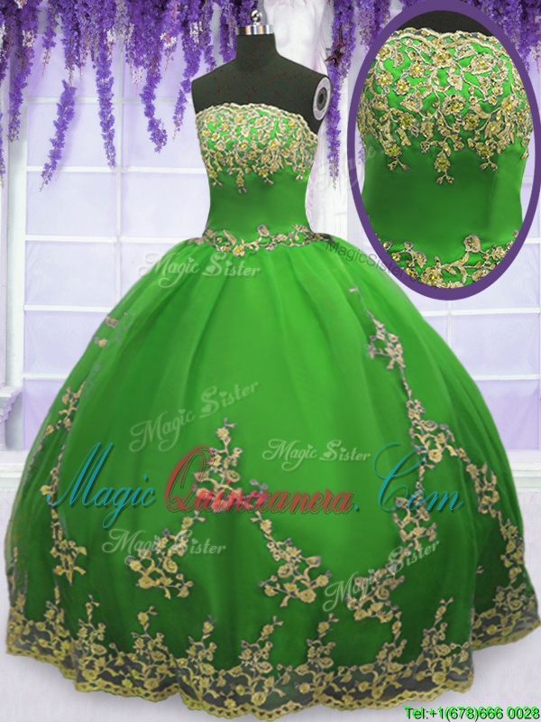 Sleeveless Zipper Floor Length Appliques Quinceanera Dress
