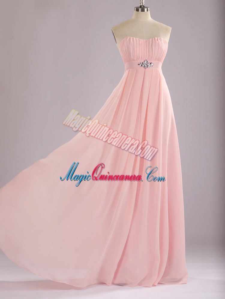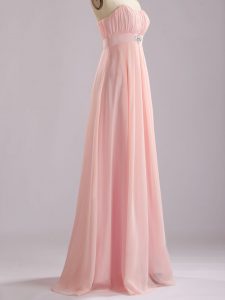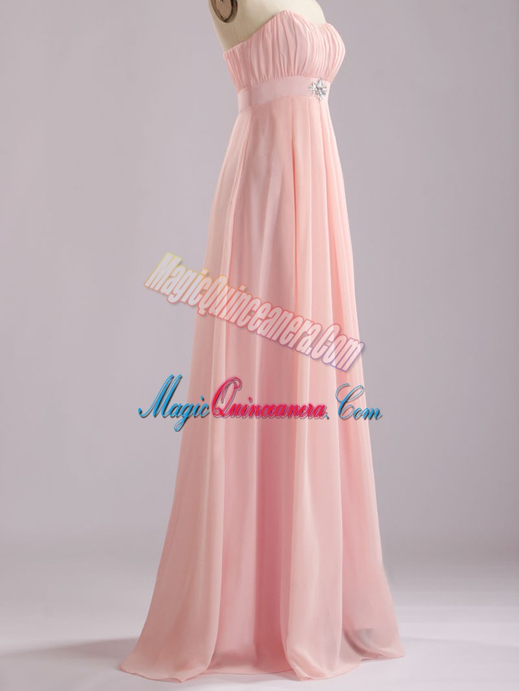 Sleeveless Zipper Floor Length Beading and Ruching Quinceanera Dama Dress