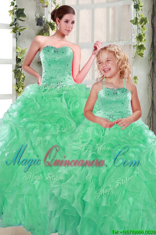 Smart Ball Gowns Sweet 16 Dresses Apple Green Sweetheart Organza Sleeveless Floor Length Lace Up