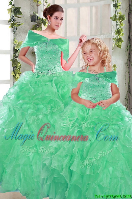 Smart Ball Gowns Sweet 16 Dresses Apple Green Sweetheart Organza Sleeveless Floor Length Lace Up - Magic Quinceanera