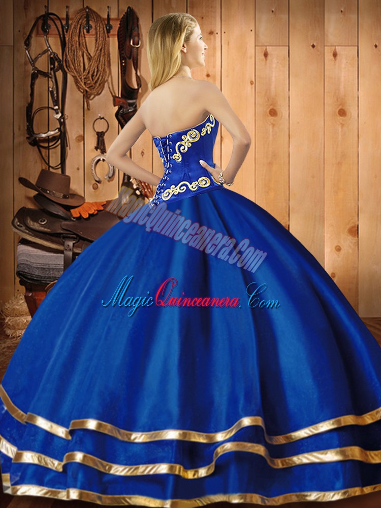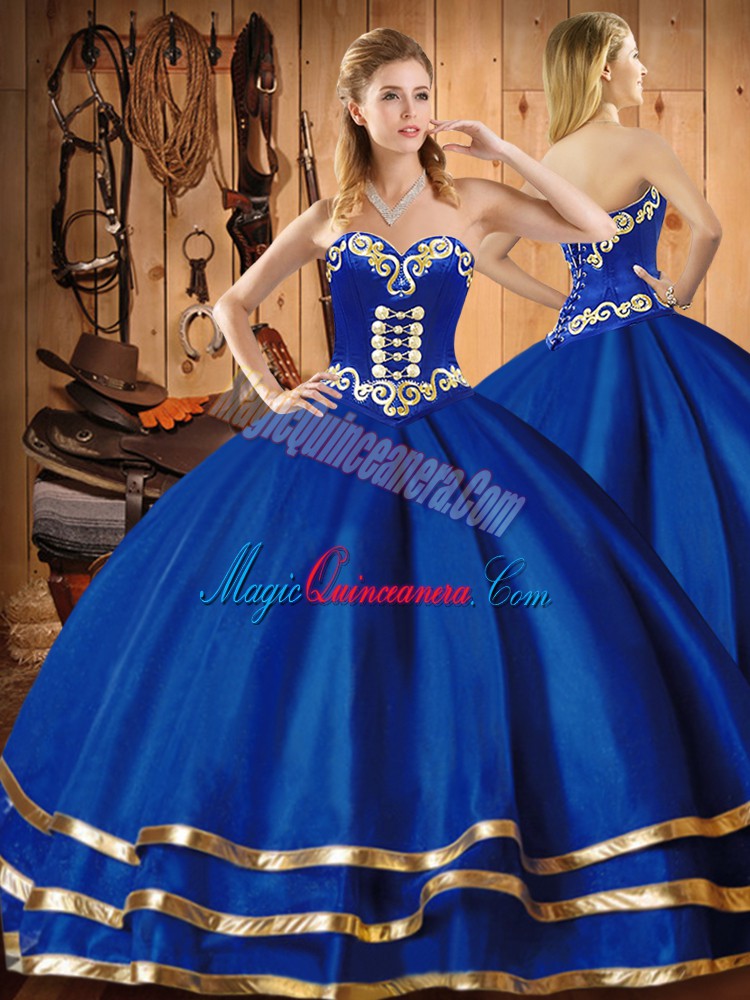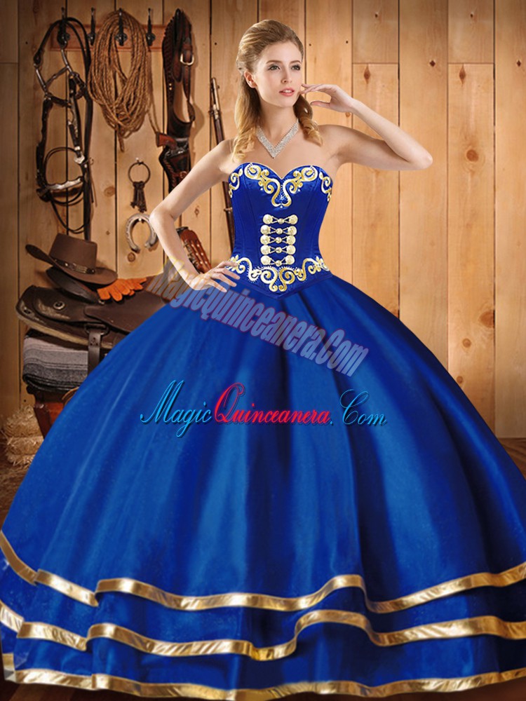 , Smart Blue Sleeveless Embroidery Floor Length Sweet 16 Quinceanera Dress