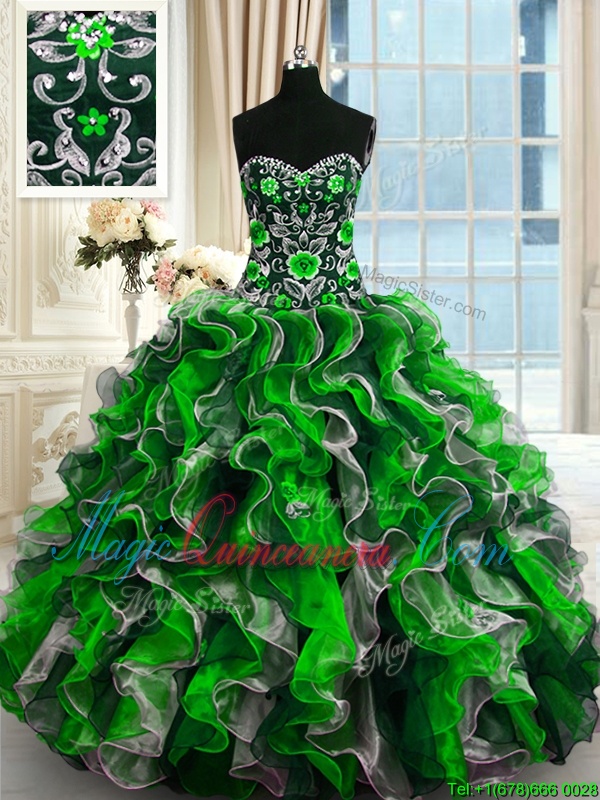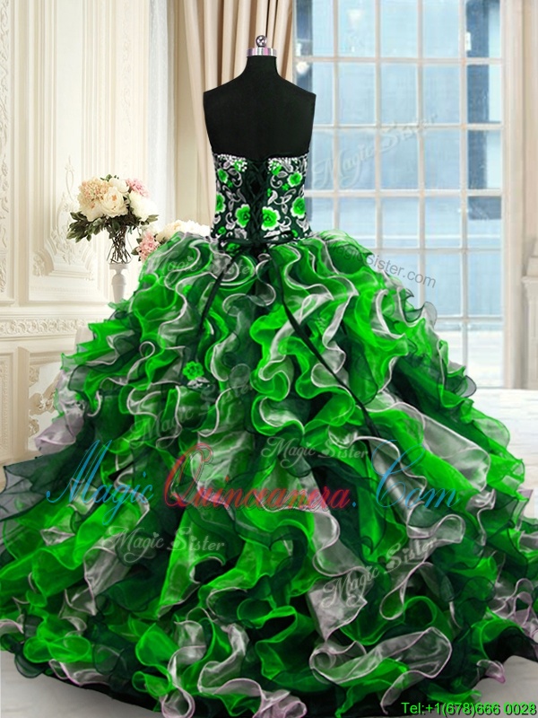 Smart Sleeveless Beading and Ruffles Lace Up Ball Gown Prom Dress