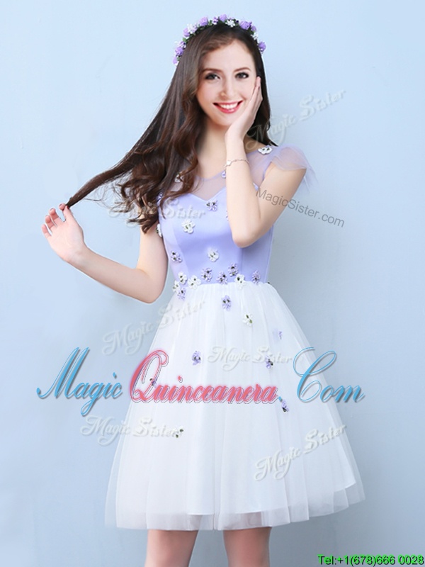 Smart White Cap Sleeves Appliques Knee Length Vestidos de Damas