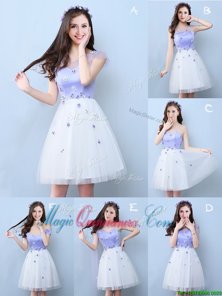 , Smart White Cap Sleeves Appliques Knee Length Vestidos de Damas