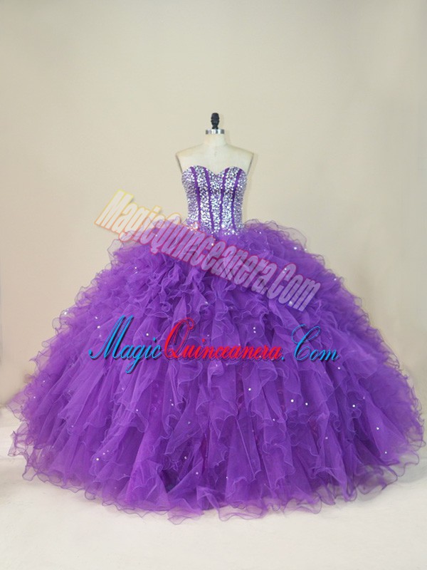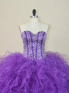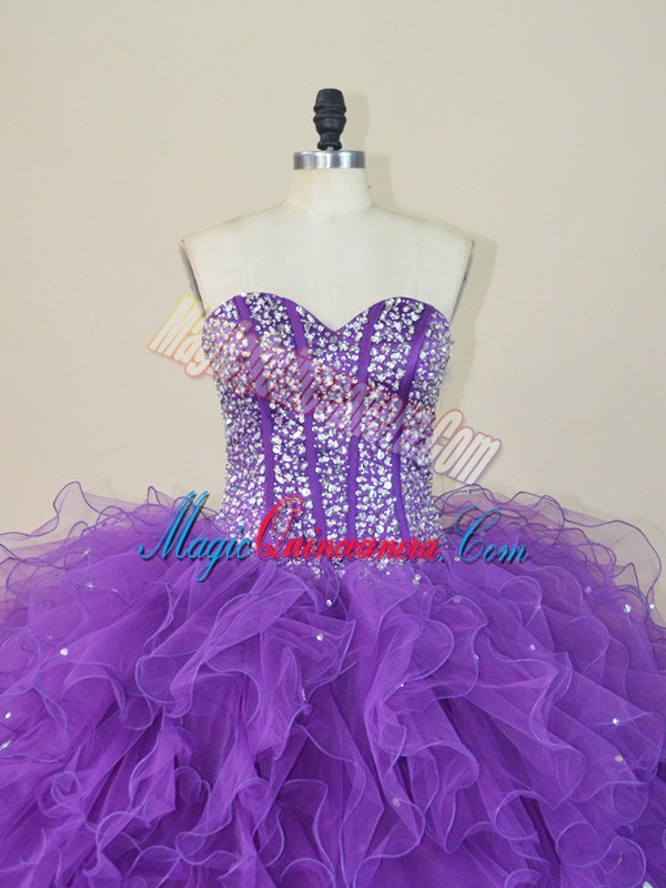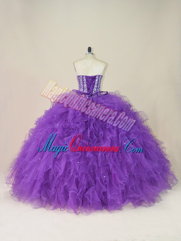 Sophisticated Ball Gowns 15 Quinceanera Dress Purple Sweetheart Tulle Sleeveless Floor Length Lace Up