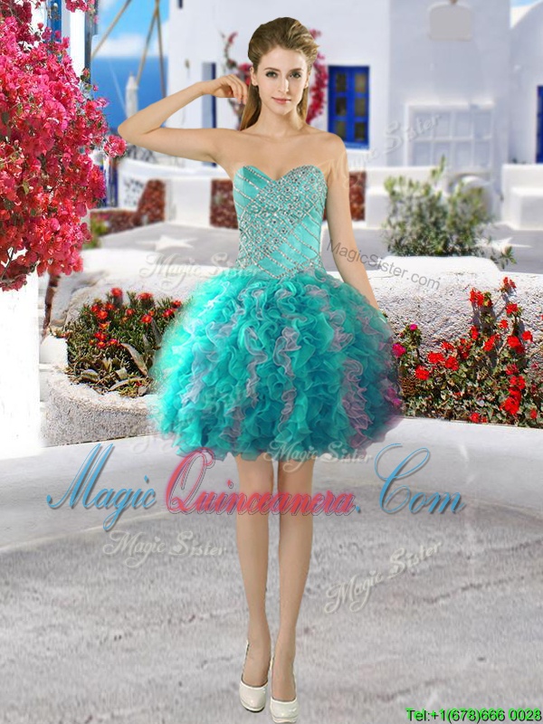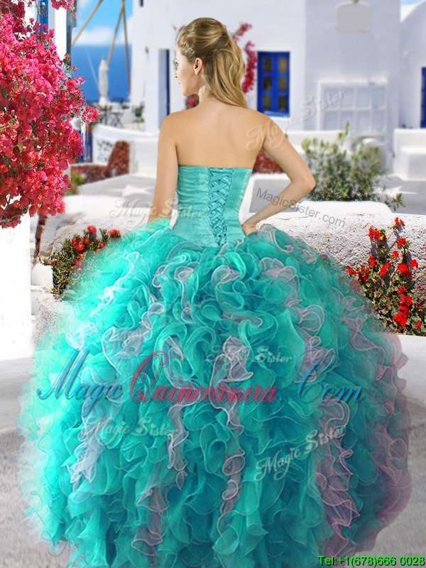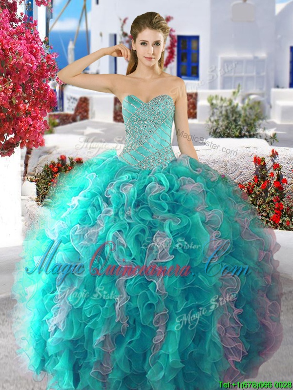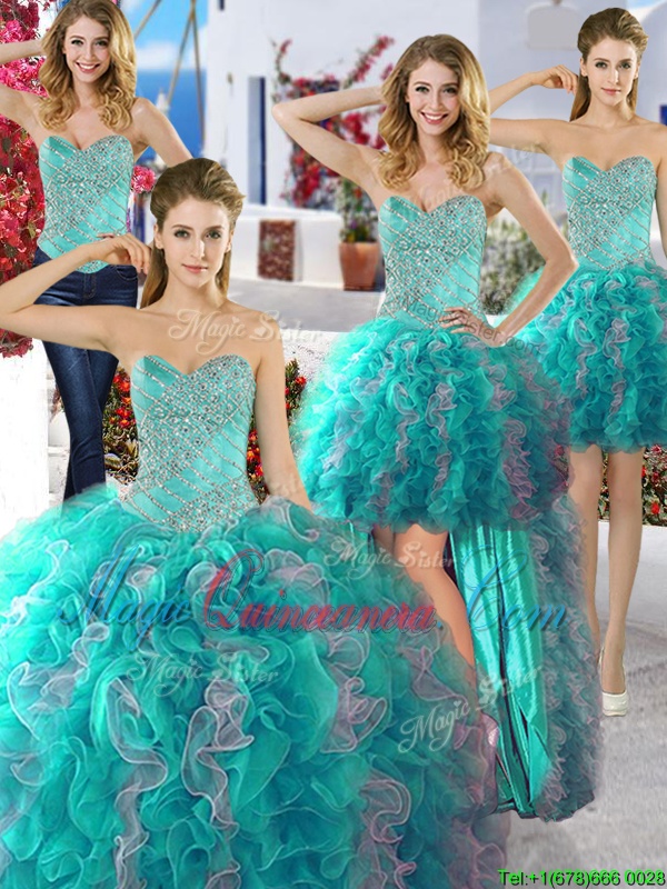 Sophisticated Four Piece Sleeveless Floor Length Beading Lace Up Quinceanera Dress with Multi-color