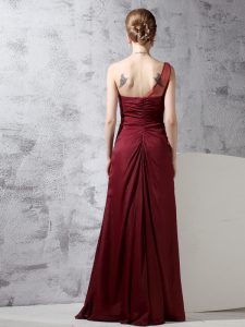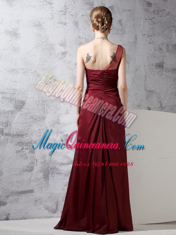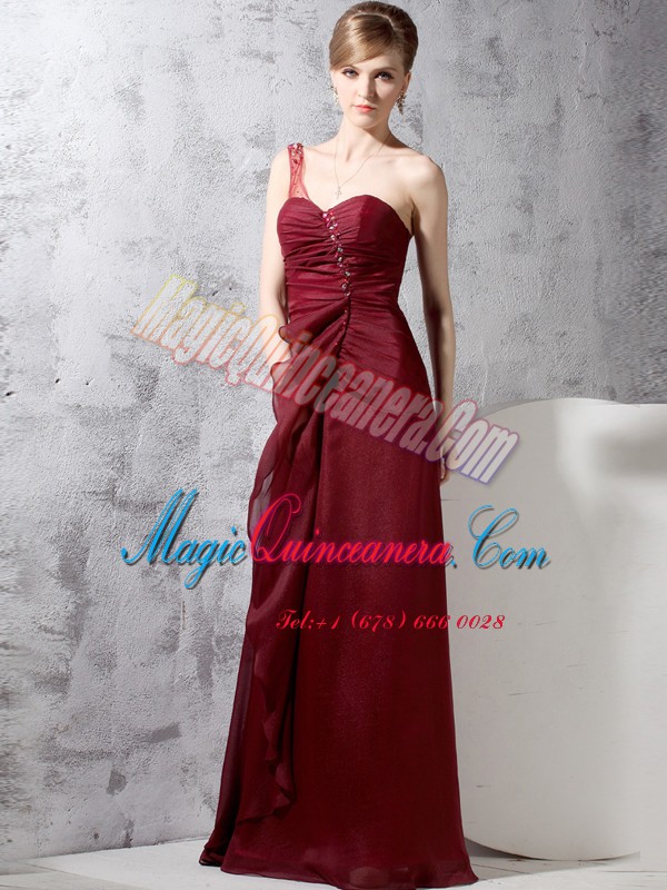 Sophisticated One Shoulder Sleeveless Zipper Floor Length Beading and Ruching