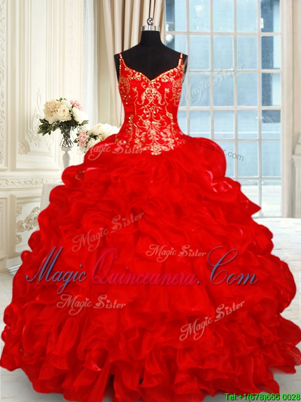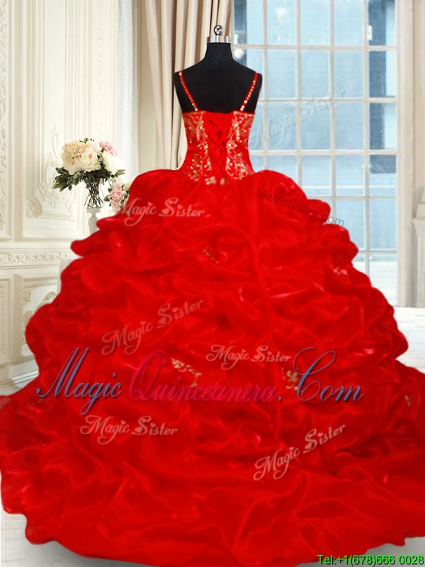 Sophisticated Organza Sleeveless Ball Gown Prom Dress Brush Train and Beading and Ruffles and Pick Ups