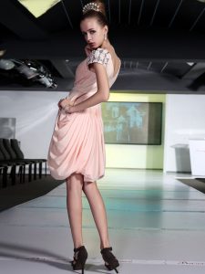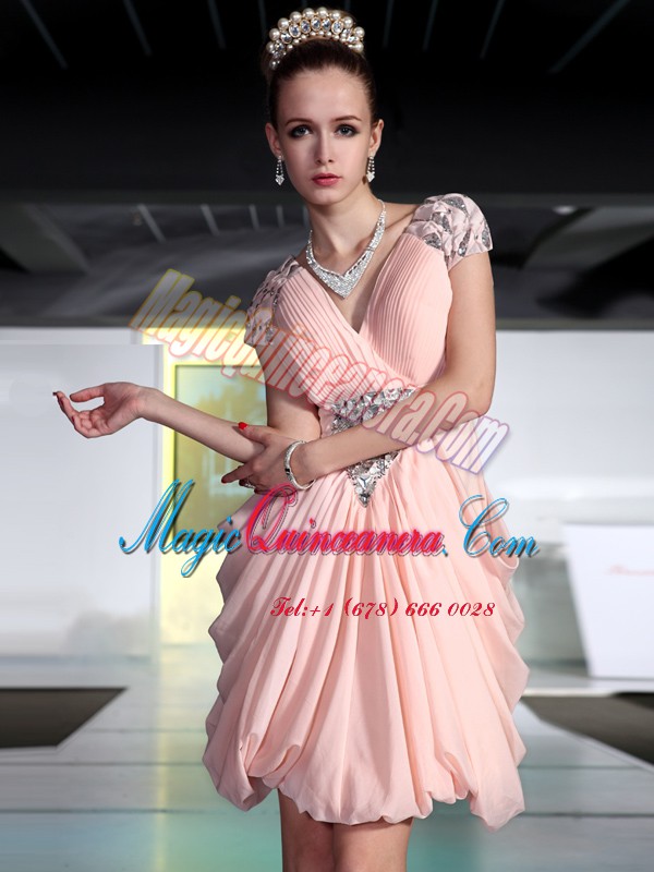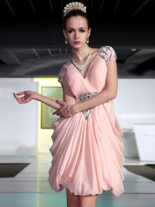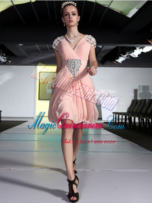 Sophisticated Peach Sleeveless Beading Knee Length Mother Of The Bride Dress