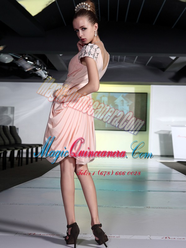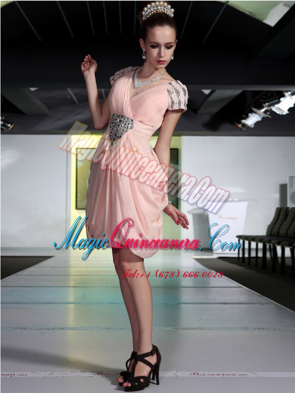 , Sophisticated Peach Sleeveless Beading Knee Length Mother Of The Bride Dress