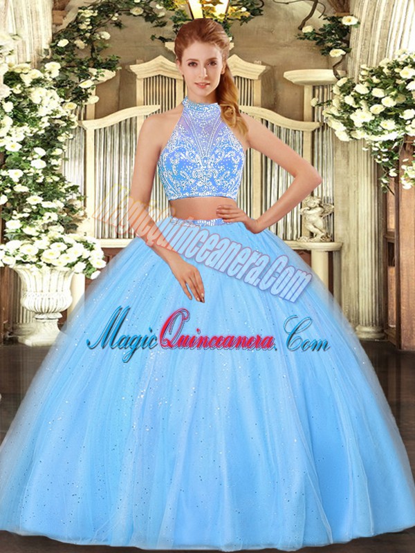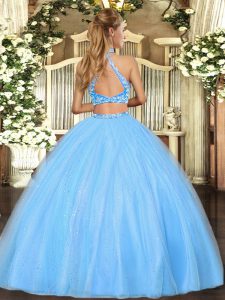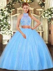 , Sophisticated Sleeveless Criss Cross Floor Length Beading Sweet 16 Dress