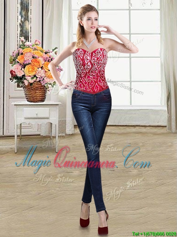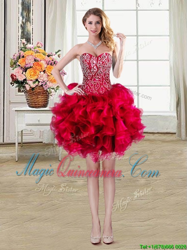 Sophisticated Three Piece Red Sleeveless Brush Train Beading and Ruffles 15th Birthday Dress - Magic Quinceanera