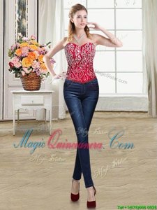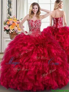Sophisticated Three Piece Red Sleeveless Brush Train Beading and Ruffles 15th Birthday Dress