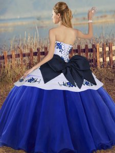 Sophisticated Tulle Sweetheart Sleeveless Lace Up Embroidery and Bowknot Ball Gown Prom Dress in White And Purple