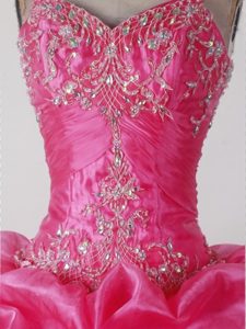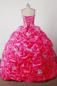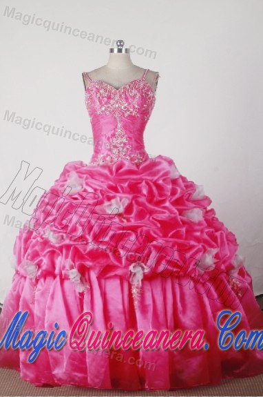 floor length quince dress with pick ups, Spaghetti Straps and Hand Flowers Quincenera Dresses in Hot Pink