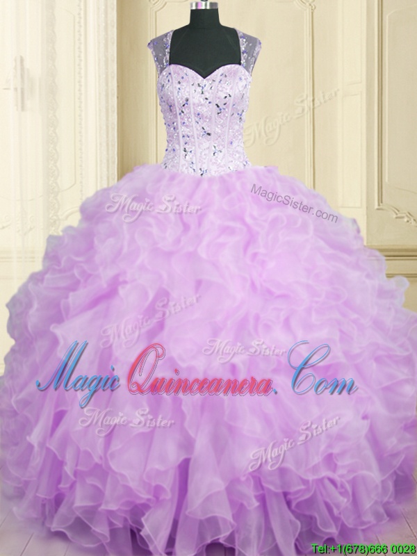 , Spectacular Floor Length Ball Gowns Sleeveless Lavender Sweet 16 Dress Zipper