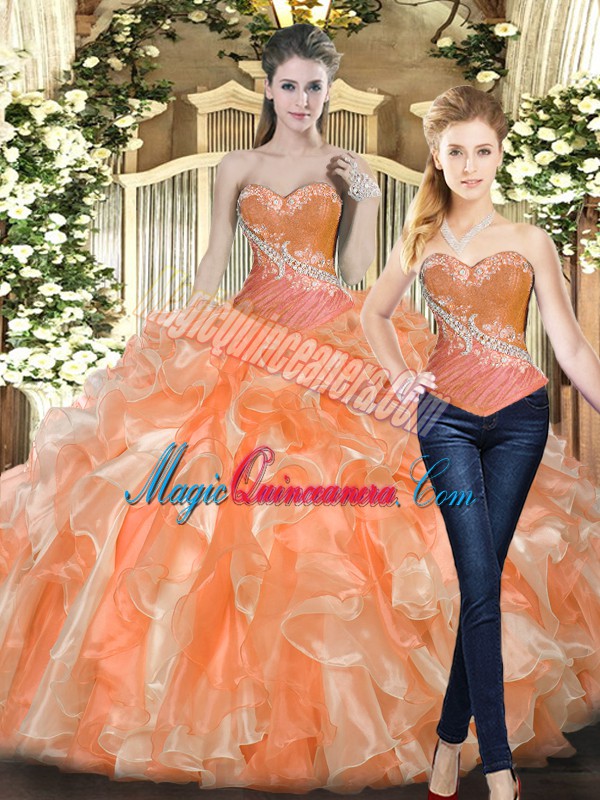 , Spectacular Floor Length Ball Gowns Sleeveless Orange Red Sweet 16 Dresses Lace Up