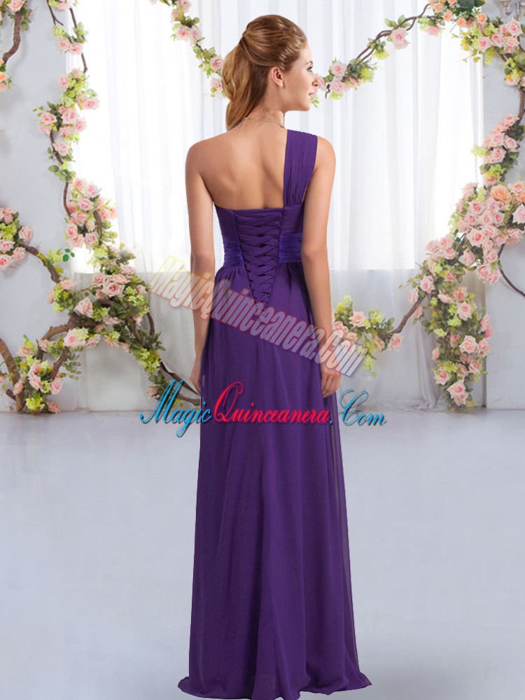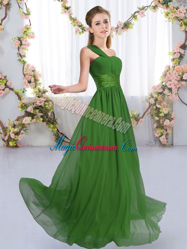 Spectacular Green One Shoulder Neckline Ruching Quinceanera Court of Honor Dress Sleeveless Lace Up