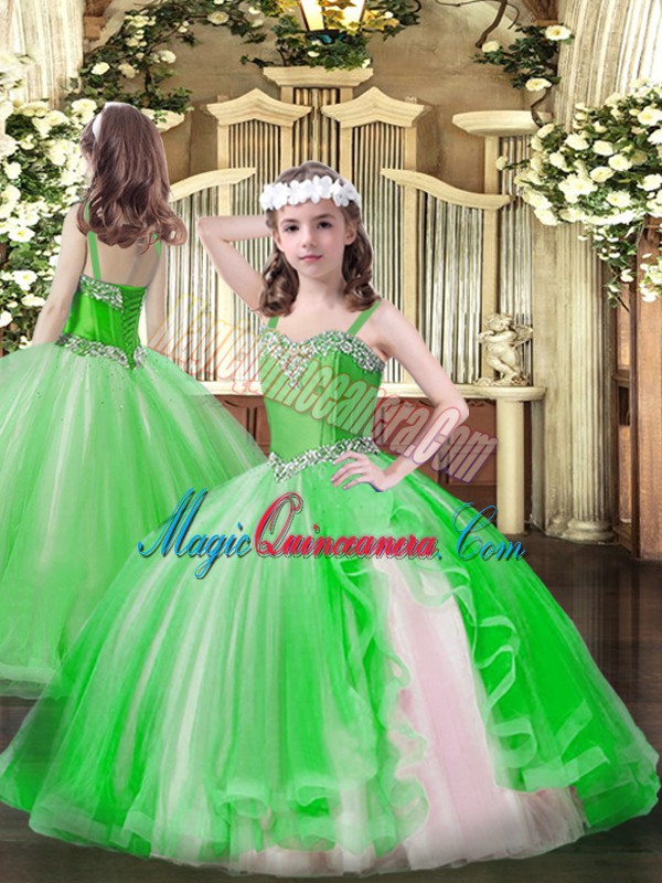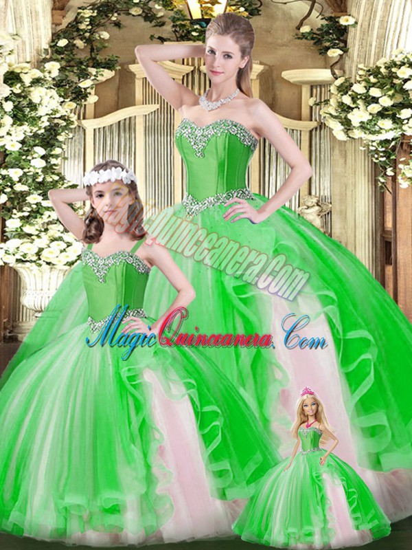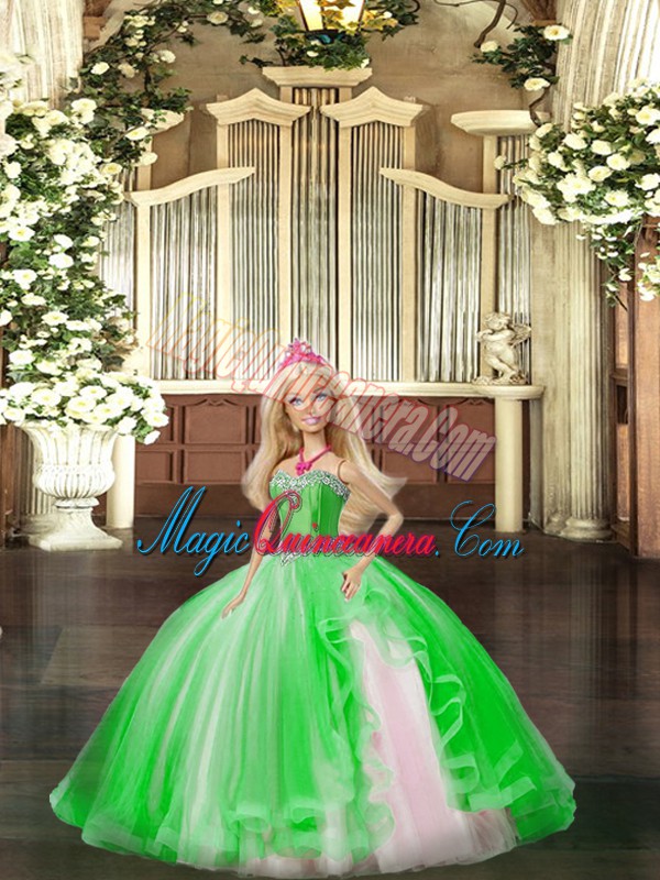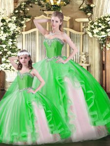 Spectacular Organza Sweetheart Sleeveless Lace Up Ruffles Sweet 16 Quinceanera Dress in Green
