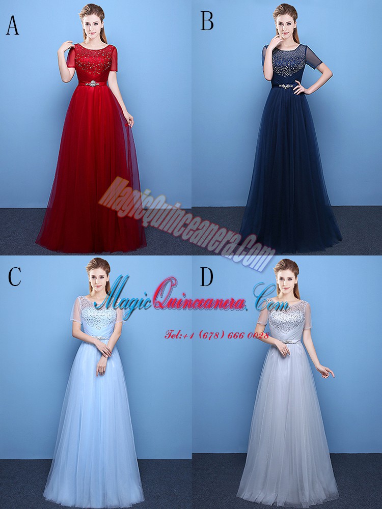 , Spectacular Scoop Short Sleeves Beading Lace Up Mother Of The Bride Dress