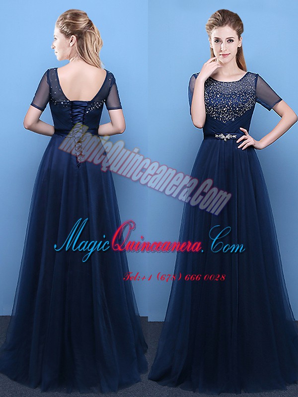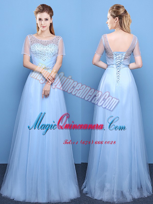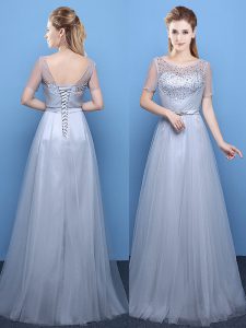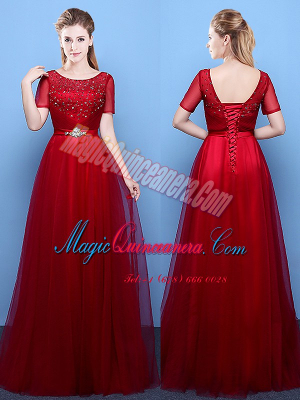 Spectacular Scoop Short Sleeves Beading Lace Up Mother Of The Bride Dress