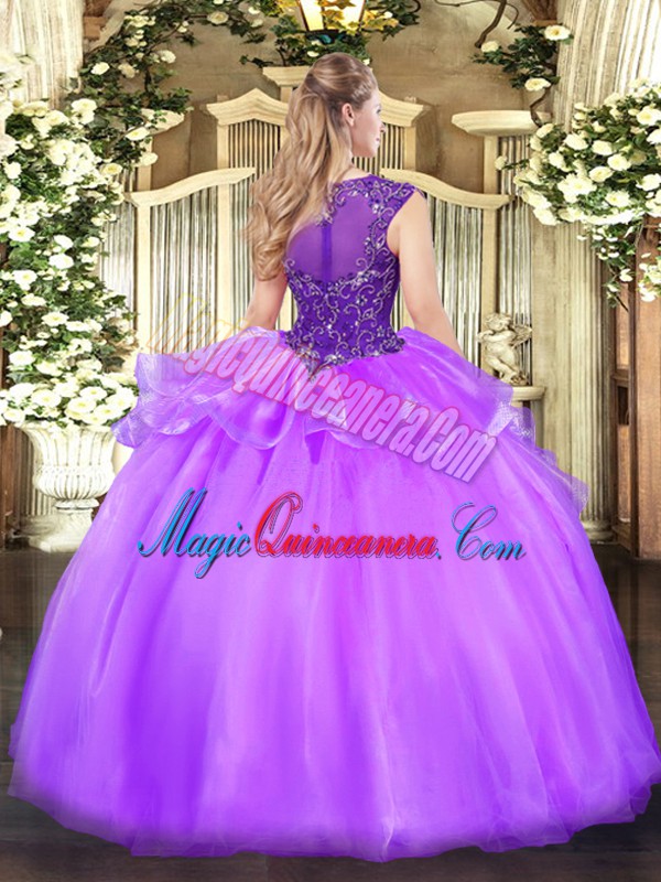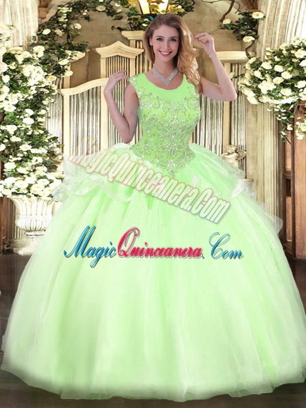 , Spectacular Scoop Sleeveless Organza Sweet 16 Dress Beading Zipper