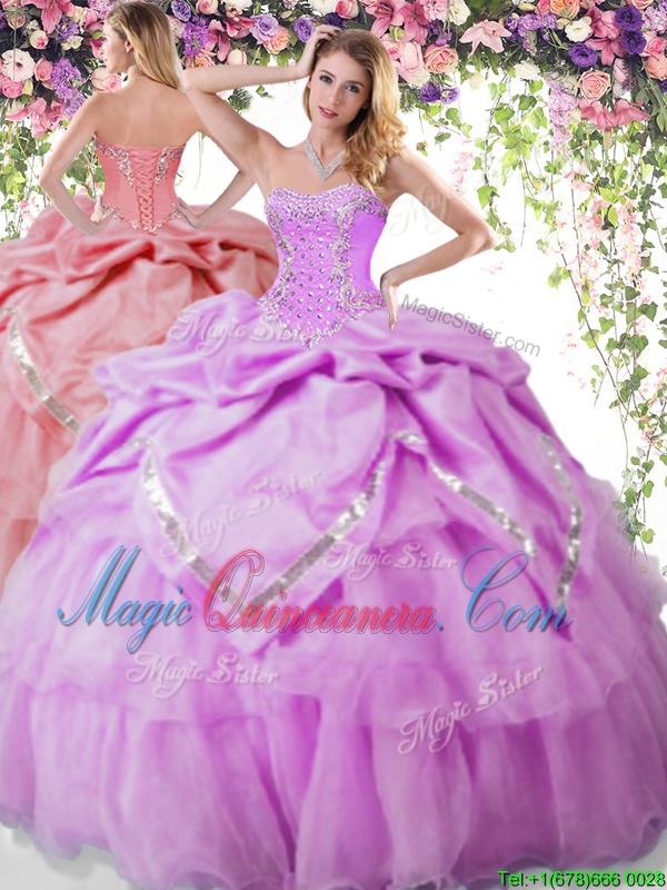 Spectacular Sleeveless Lace Up Floor Length Beading and Pick Ups 15 Quinceanera Dress