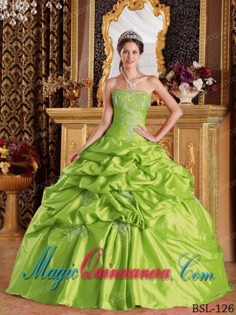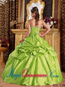Spring Green Pick-ups Ball Gown Strapless Vintage Taffeta Quinceanera Dress